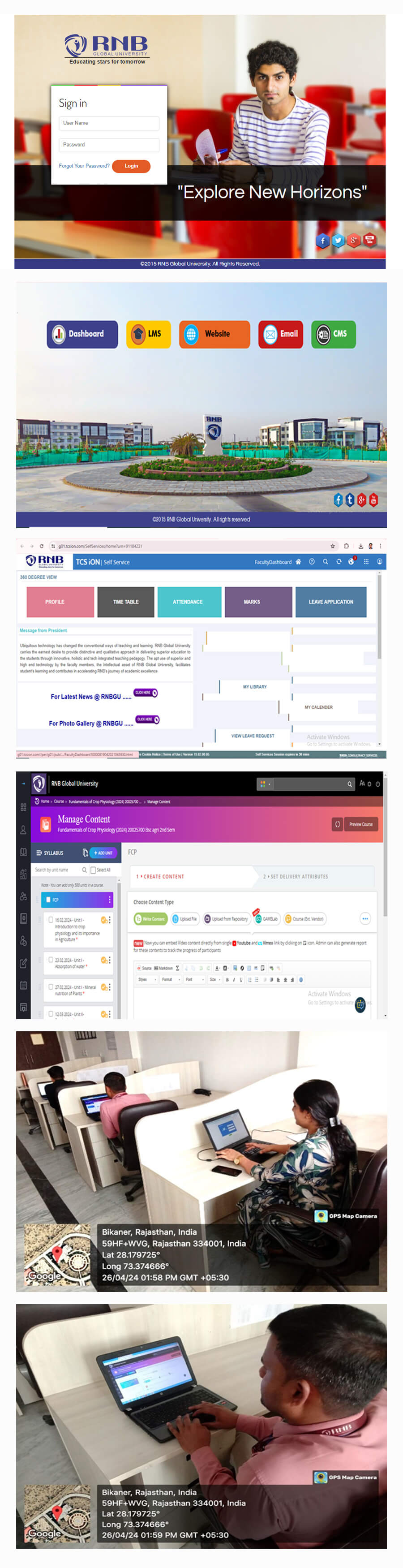 University has a dynamic website & ERP web link, http://rnbconnect.rnbglobal.edu.in/